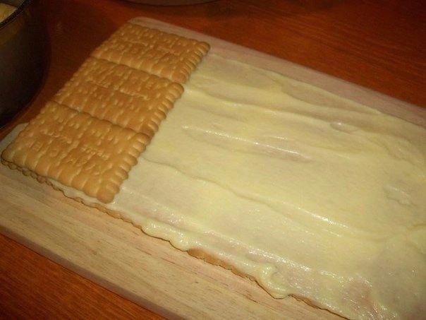 Полученную массу остужаем, добавляем масло и взбиваем миксером. Готовый крем оправляем в холодильник. Когда крем застынет, начинаем собирать торт. Раскладываем печенье в форме прямоугольника в пять слоёв по 11 штук. Каждый слой смазываем кремом. И тирамису готов. Но дайте время пропитаться, так он будет намного вкуснее.