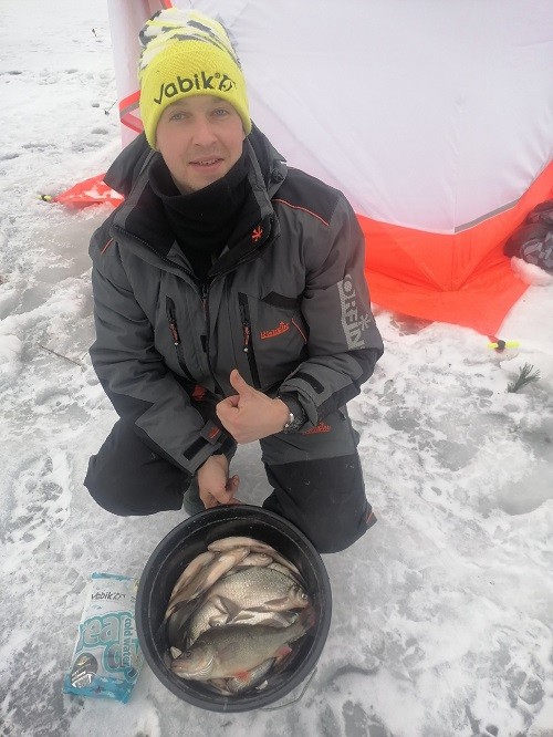 «К обеду мы на месте. Честно скажу, в Зельве бывал не один раз, но столько народу видал впервые. Люди разбились на две толпы. Решили мы сесть между ними, т. к. не люблю я сидеть в толпе. Бурим серию лунок на глубине и на бровке и делаем закорм. Начинаем проверять, но рыбы в них оказалось не много, и она проходная. Дело близится к вечеру, и люди потихоньку начинают собираться домой. Мы решили пробежаться по старым лункам с эхолотом. И о, чудо! В одной из них рыба стояла столбом, там и ставим палатку. Пока поставили, рыбка конечно отошла, но корм и мелкий мотыль сделали свою работу. Ночью клёв был, но не активный. Пик его пришёлся с 9:00 до 13:00. Рыбалкой остались довольны. Как всегда прошу убирать за собой мусор, а на льду его очень много».