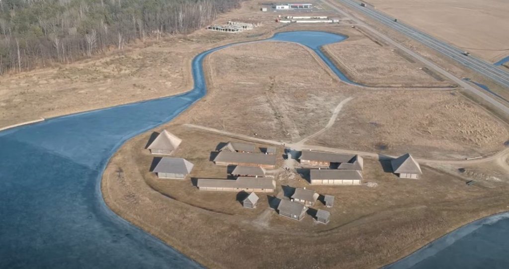 На начальном этапе строительства водоем очистили и расширили, а заодно удалили от кустарника лес. На основной территории туристического комплекса вырос с десяток аккуратных домиков «под старину». Правда, на некоторых из них крышу соорудили из камышей, а есть домики вообще без крыши.