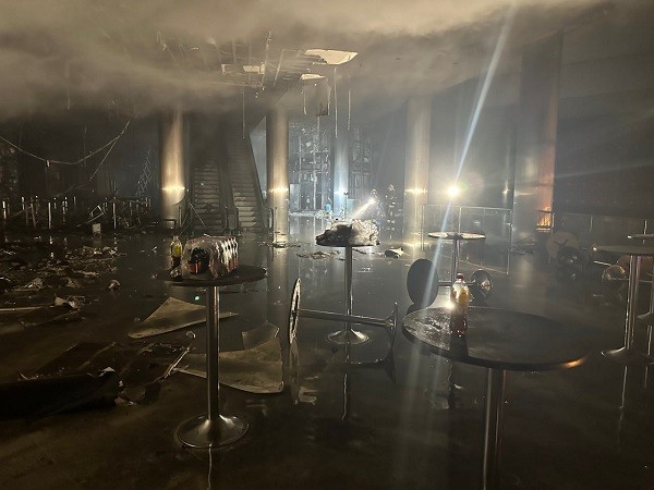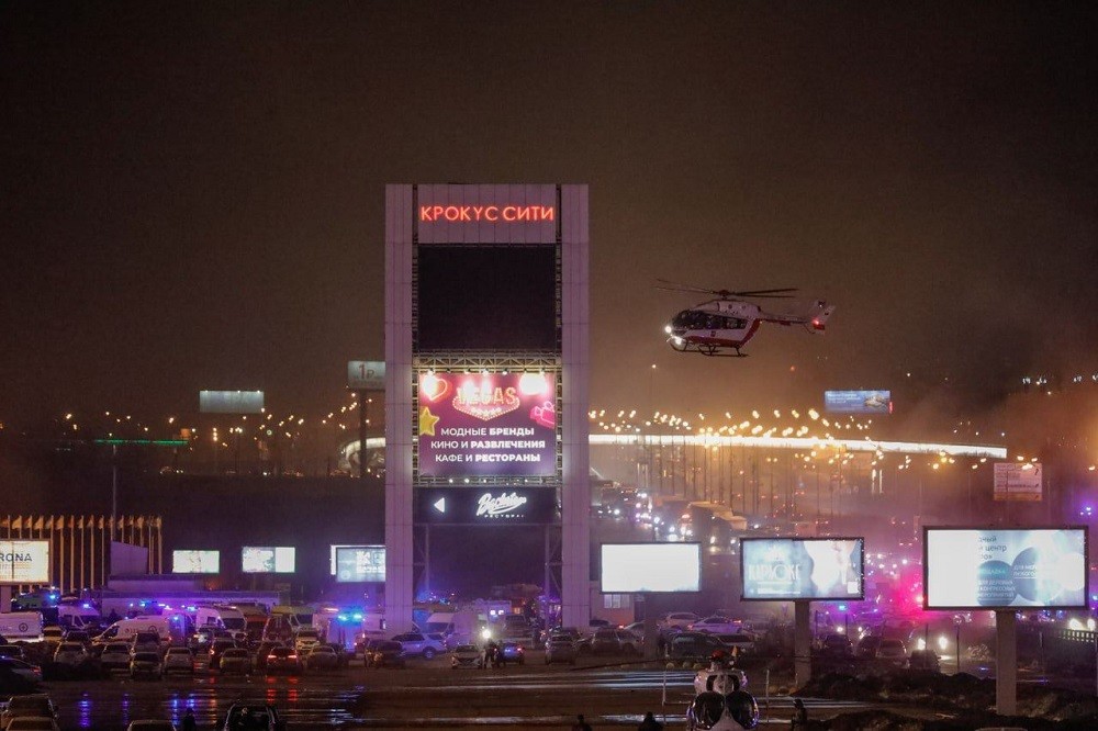 Террористы подожгли огромное здание развлекательного центра, площадь пожара достигала 13 тысяч кв. метров. На его тушение приехали десятки машин пожарных, задействованы вертолёты. Дым из центра шёл ещё и утром 24 марта, но основное горение было локализовано.