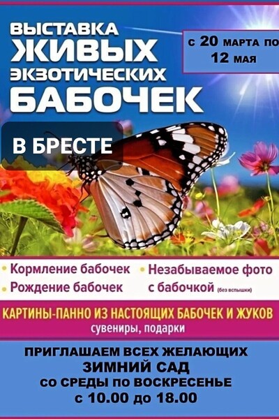 Живых экзотических бабочек с разных континентов, необычных расцветок и размеров (есть даже бабочки из книги рекордов Гиннесса!) можно увидеть в эти дни в Зимнем саду Бреста.