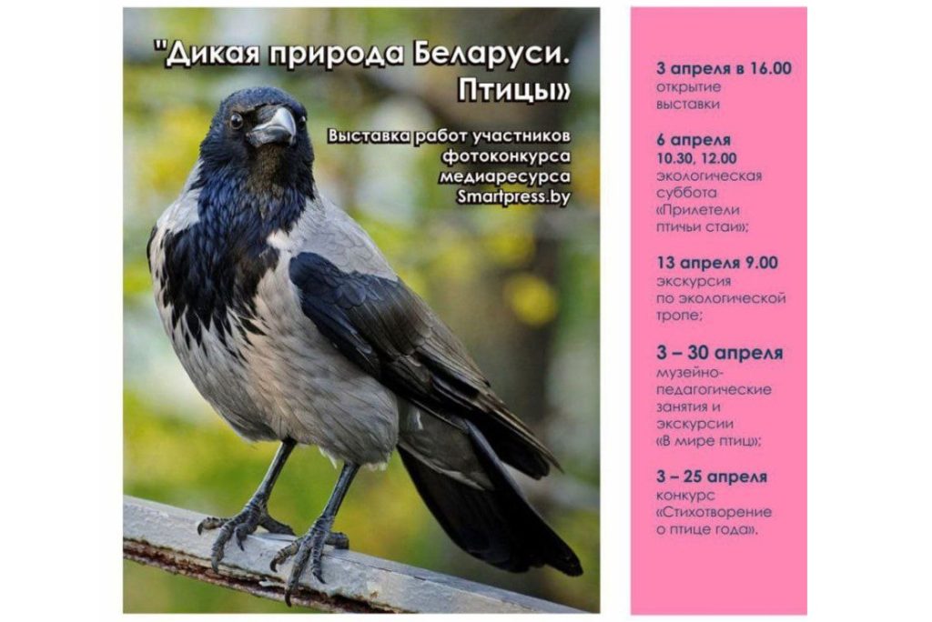 С 3 апреля по 30 апреля посетители и гости города смогут увидеть выставку лучших работ участников фотоконкурса «Дикая природа Беларуси 2023», предоставленную ООО «Смартпресс», коллекцию птичьих гнёзд, яиц для кольцевания из фондов областного краеведческого музея.