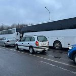 Туристы поднимаются в кабину экскаватора малыми группами по 5 человек.