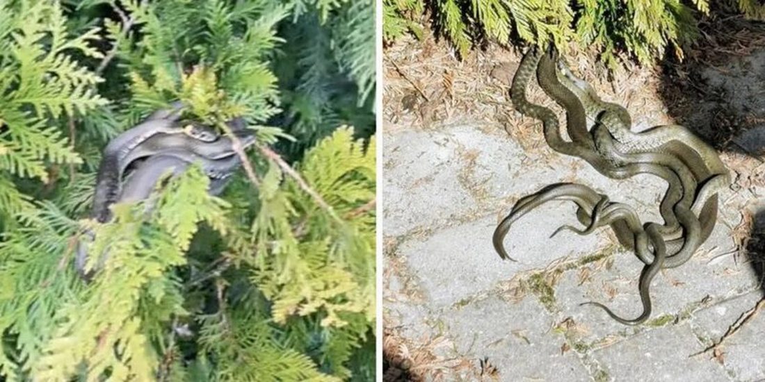 Но в апреле 2024 года количество змей очень заметно увеличилось. Ужи выползают греться на солнышке, а иногда даже висят на деревьях. В комментариях к таким видео люди высказывают беспокойство: незваные гости могли забраться и в огороды. Другие комментаторы спешат успокоить: ужей можно увидеть только рядом с водоемами, в огородах их быть не должно.