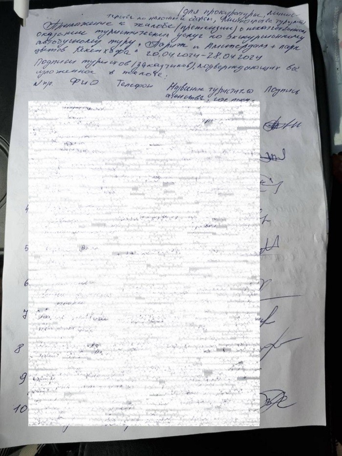 Но это не помешало туристам на эмоциях ещё находясь на территории Европы, собрать более 30 подписей под жалобой, которую грозились отправить в налоговую, Министерство спорта и туризма и почему-то в прокуратуру.