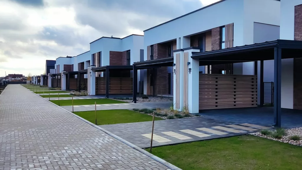 Квартира находится в новом таунхаусе, построенном в 2022 году в ЖК «Скандинавское предместье». Общая площадь таунхауса составила 137 квадратных метров, а участок составляет 5 соток. При этом рядышком ведется строительство других таунхаусов. Стартовая цена от застройщика составляет 149 тысяч долларов.