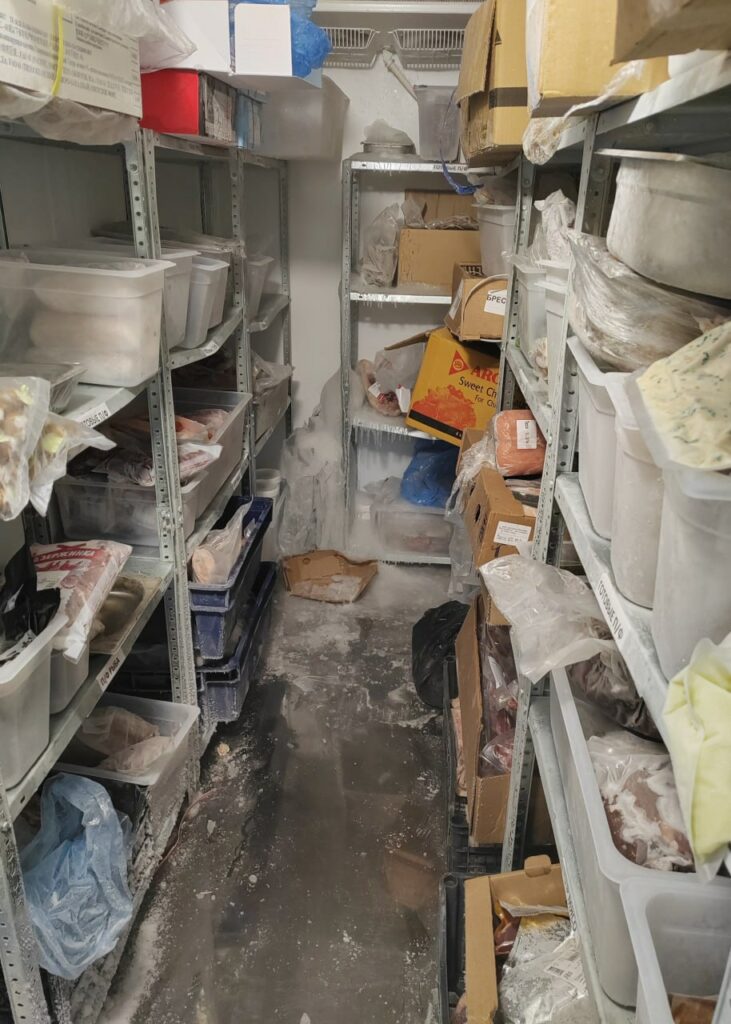 Проверив низкотемпературную морозильную камеру (-18С°), контролеры обнаружили, что на пищевой продукции образовались сугробы снеговой «шубы» и льда. Аналогичная ситуация была на стенах, потолке и дверях морозильной камеры.