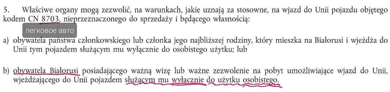 Из документа следует, что из РБ едет: с паспортом EU на ЛИЧНОМ авто собственник или близкий родственник; с паспортом РБ ТОЛЬКО собственник на ЛИЧНОМ авто; грузовые авто ЗАПРЕЩЕНЫ.