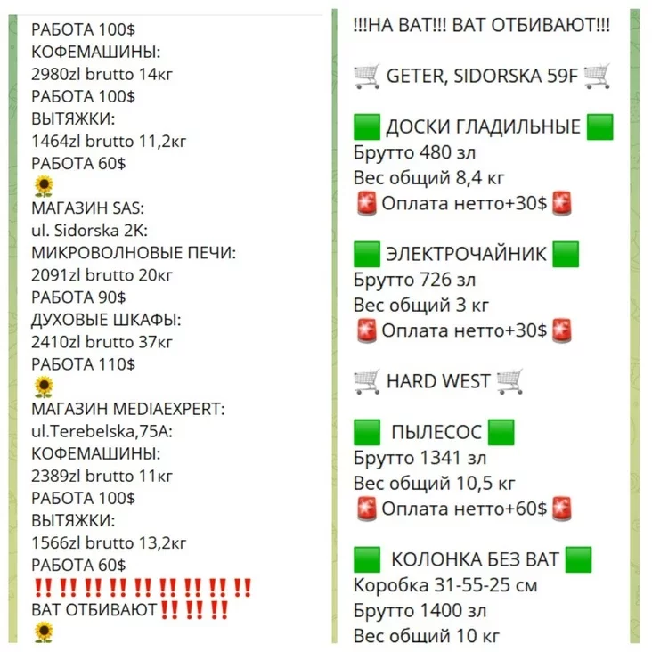 Помимо бытовой техники для кухни, из Польши передают и другие товары. Так, например, на перевозке пылесоса весом 10,5 кг челнок может заработать $60. За чайник весом 3 кг — $30, за гладильную доску — еще $30.