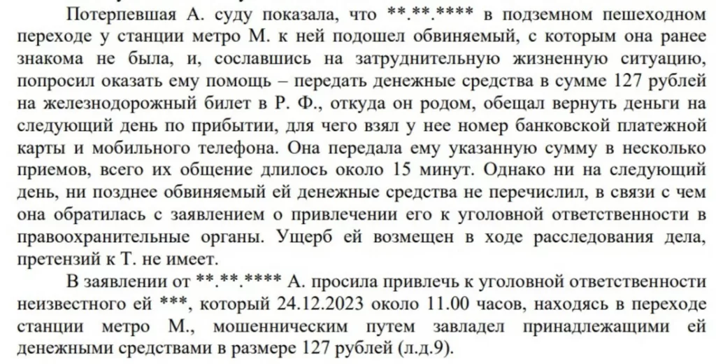 Мужчину обвинили в мошенничестве по части 2 статьи 209 УК – завладение имуществом путем обмана, совершенное повторно. Несмотря на то, что он вернул женщине деньги и признал вину, суд приговорил его к году исправительных работ с удержанием 25% зарплаты в доход государства.