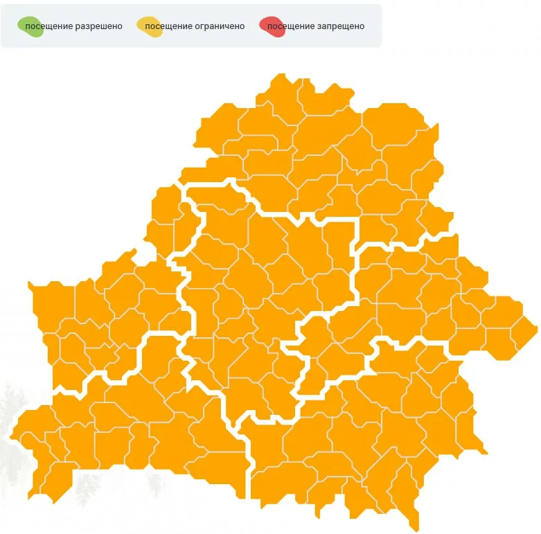 Решение о введении ограничения или запрета на посещение лесов в Беларуси принимают местные райисполкомы. Делается это по ходатайству Министерства лесного хозяйства и Министерства по чрезвычайным ситуациям. В решениях прописывается порядок и условия введения ограничений или запретов на посещения лесов.