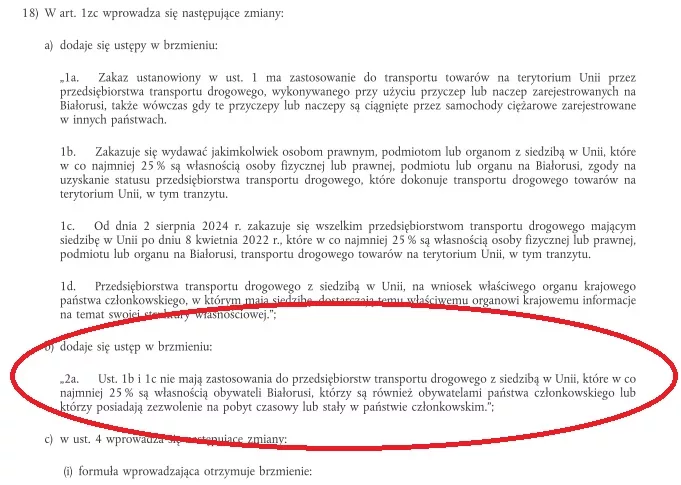 С 30 июня 2024 года вступили в силу некоторые новые санкции Евросоюза в отношении Беларуси. Среди них была информация, что транспортные компании в Польше не могут иметь более 25% белорусского капитала. СМИ навели панику, что придётся закрываться многим белорусским компаниям в той же Польше. Однако всё оказалось не совсем так. Про это рассказал логист Алексей, который работает в Польше.
