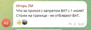 «Расклад такой. По зелёному параллельно мне люди проезжали с товаром (машины были с товаром). Приезжаешь на ватный канал, таможня проверяет что везешь и возвращает назад в РП. Сложно сказать, будут ли дальше с товаром пропускать по зеленому. Я на разворот».