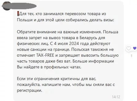 В чатах делятся 200-страничным документом (на английском языке OJ_L_202401865_EN_TXT на польском языке OJ_L_202401865_PL_TXT)официального журнала Евросоюза, в котором содержится огромный перечень запрещённых к перевозу товаров.