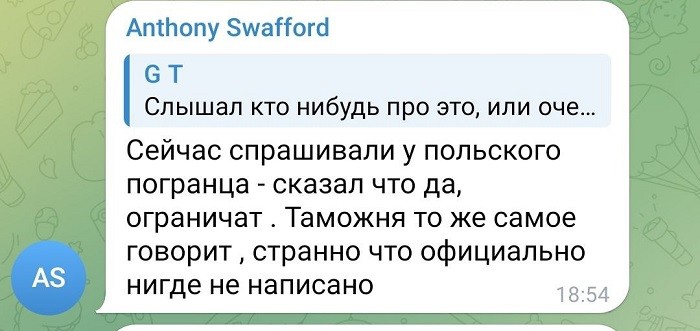 Однако люди нигде не могли найти, откуда ноги растут у этих сообщений – официально нет сообщений с этими датами. Но один из проезжавших границу сообщил, что это ему подтвердили польские пограничники и таможенники.
