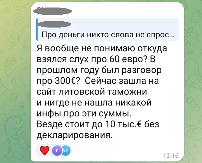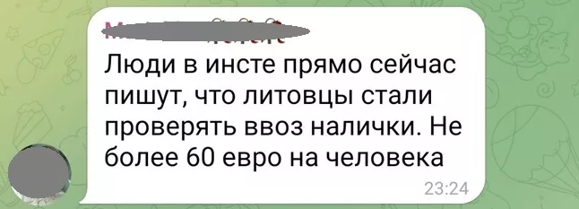 Очередные слухи или вброс, взбудоражили сообщения в многочисленных приграничных чатах о том, что из Литвы в Беларусь «с завтрашнего дня», нельзя ввозить более 60 евро на человека. И кроме источника в лице некого водителя автобуса, которому литовский таможенник или пограничник шепнули про запрет и 60 евро, больше не прослеживается.