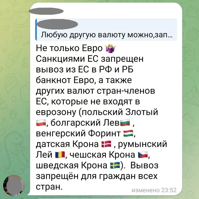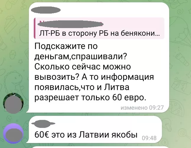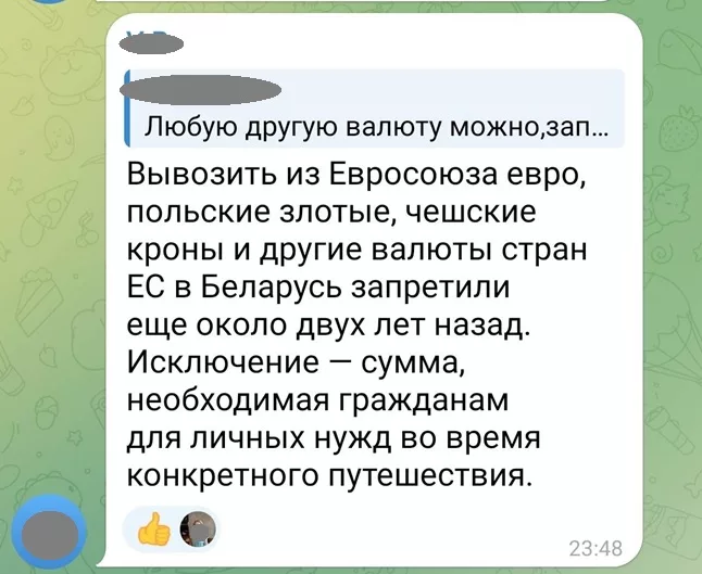 Но что факт, так ажиотаж и бурные обсуждения про те таинственные 60 евро и запрет ввозить евро в Беларусь в тех самых приграничных чатах. Что ж там пишут про очередной запрет?