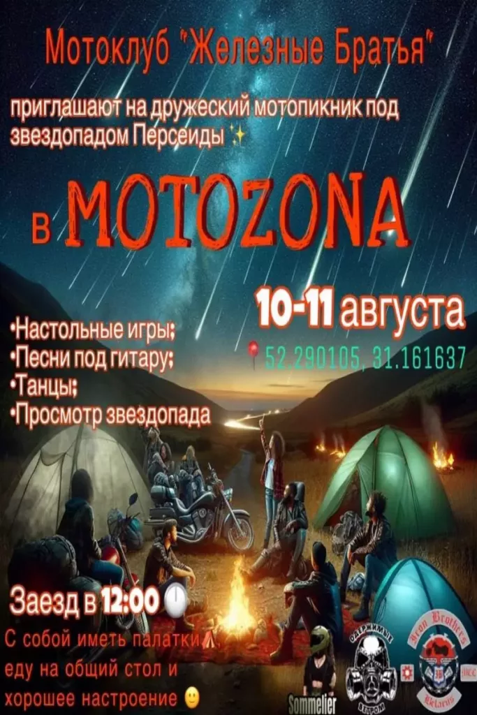 10-11 августа мотоклуб «Железные Братья» приглашают на мотопикник под звездопадом в MOTOZONA. Заезд – в 12:00
