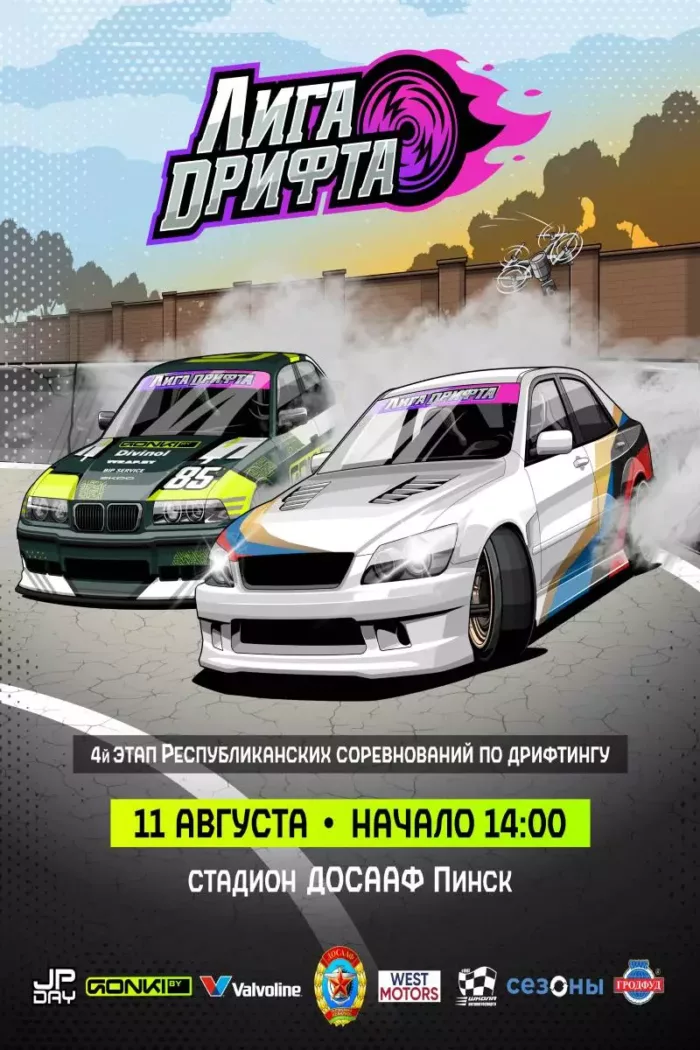 В воскресенье, 11 августа, в Пинске состоятся республиканские соревнования по дрифтингу – четвертый этап «Лиги дрифта».