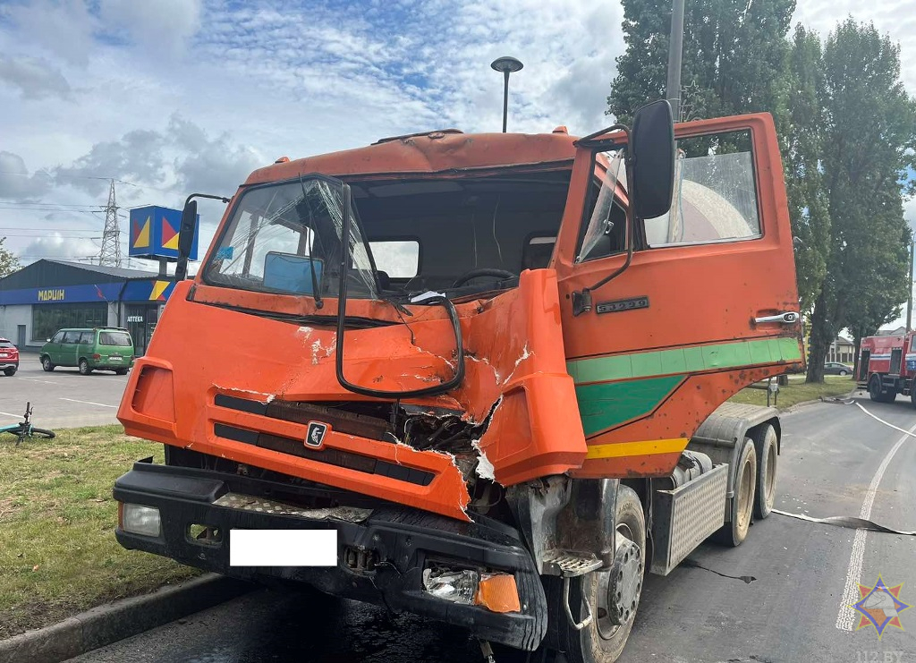 Также минувшим днем в Барановичах на улице Кирова произошло еще одно серьезное ДТП. Здесь столкнулись две бетономешалки, причем водителю КАМАЗа прижало ноги панелью и рулевой колонкой.