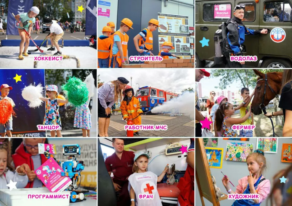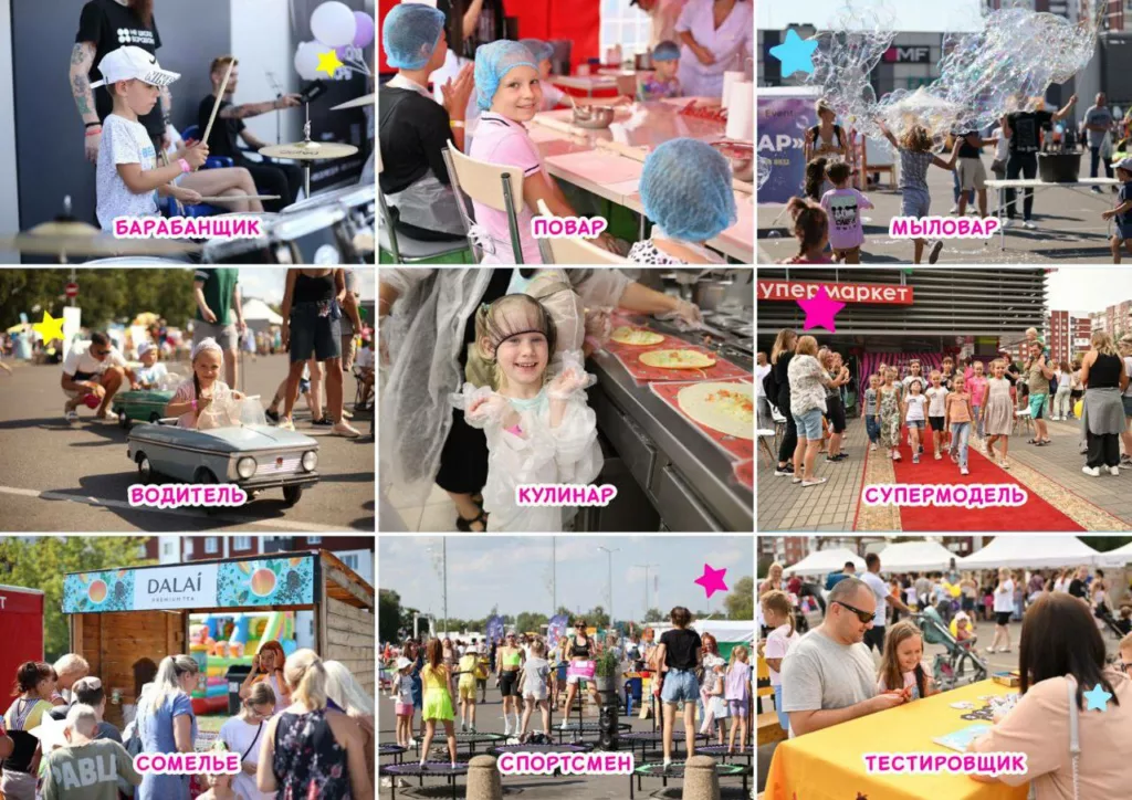По информации организаторов, на входе юные гости получат трудовые книжки и отправятся изучать профессии. Заработанные деньги можно будет потратить в фестивальные магазинах.