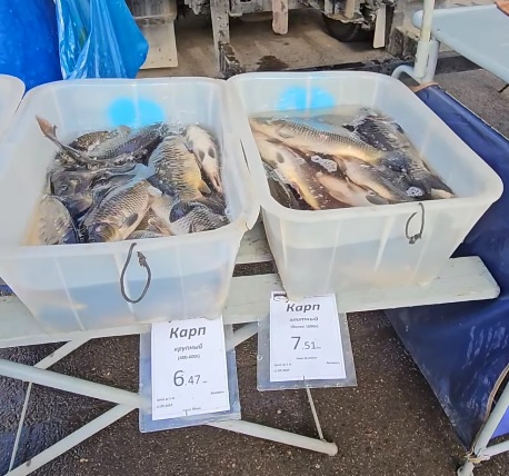 Есть живая рыба. Карась по 4,65. Карп 6,47-7,51.