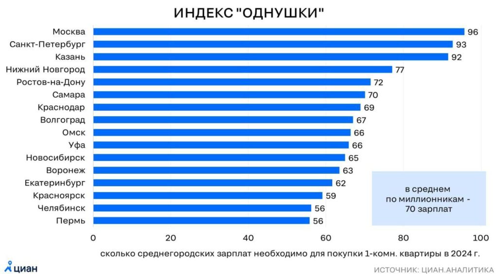 Из этого следует: чтобы купить однокомнатную квартиру в столице своей страны, жителю Беларуси понадобится 56,18 зарплаты. То есть одинокий человек должен пять лет не есть и не пить, чтобы сделать это. Такой показатель, по мнению эксперта, во всем мире считается хорошим и говорит о том, что жилье в Минске в принципе доступно.