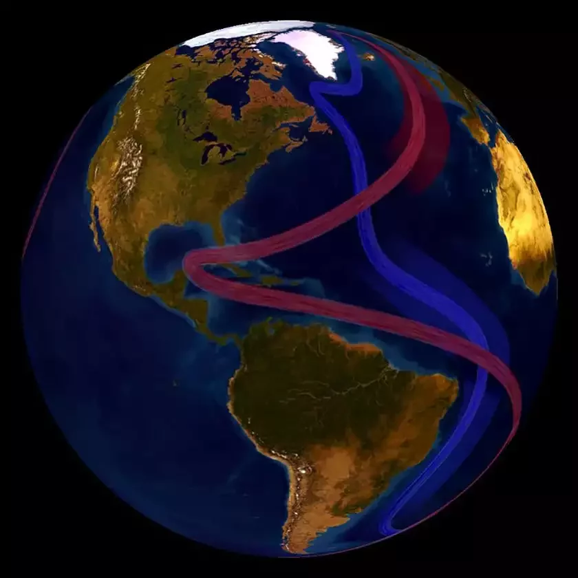 Исследования показывают, что двигатель глубокой циркуляции AMOC начал замедляться и демонстрирует тревожные признаки возможной остановки. Из-за повышения глобальных температур таяние льдов приводит к поступлению пресной воды в океаны.