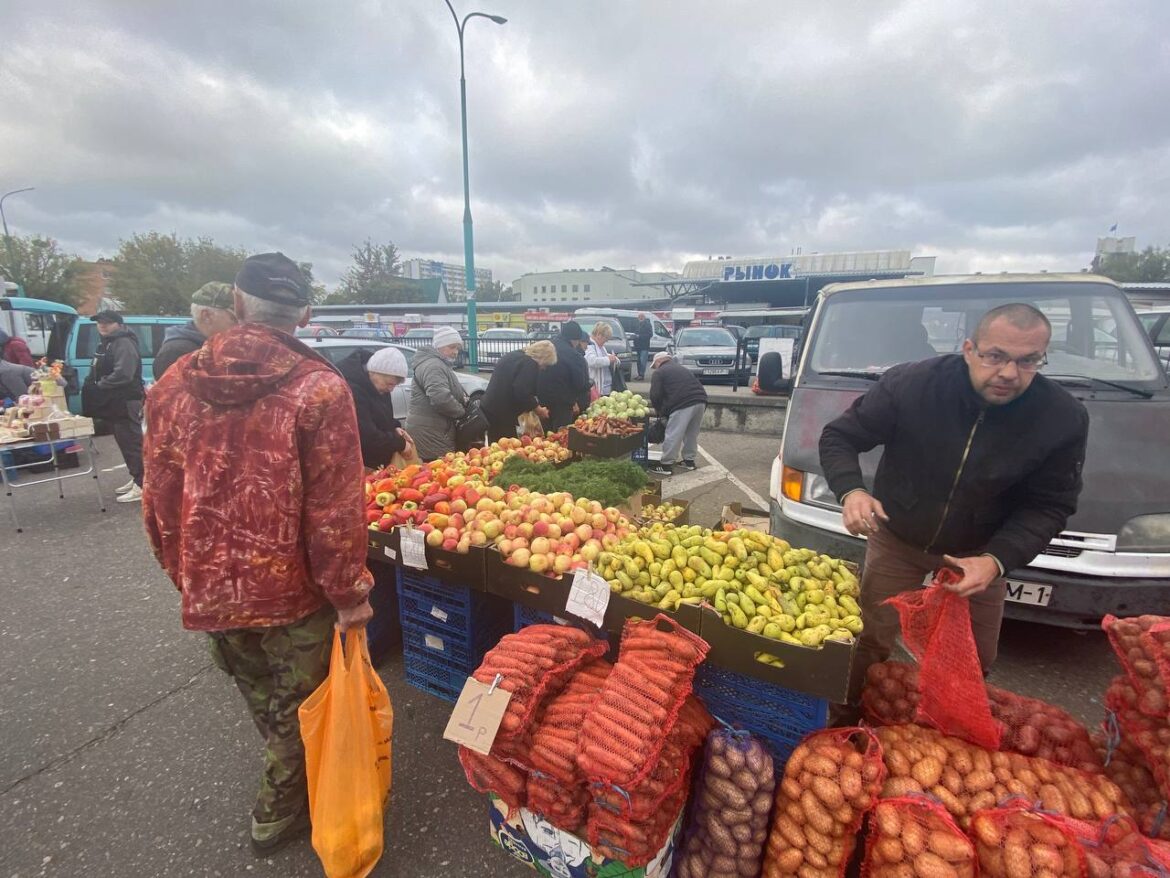 Самой большой площадкой на нынешней ярмарке считается парковка возле торгово-развлекательного центра «Экватор». Продавцы рассказывают, что много людей было здесь и в конце сентября, хотя торговля шла слабо.
