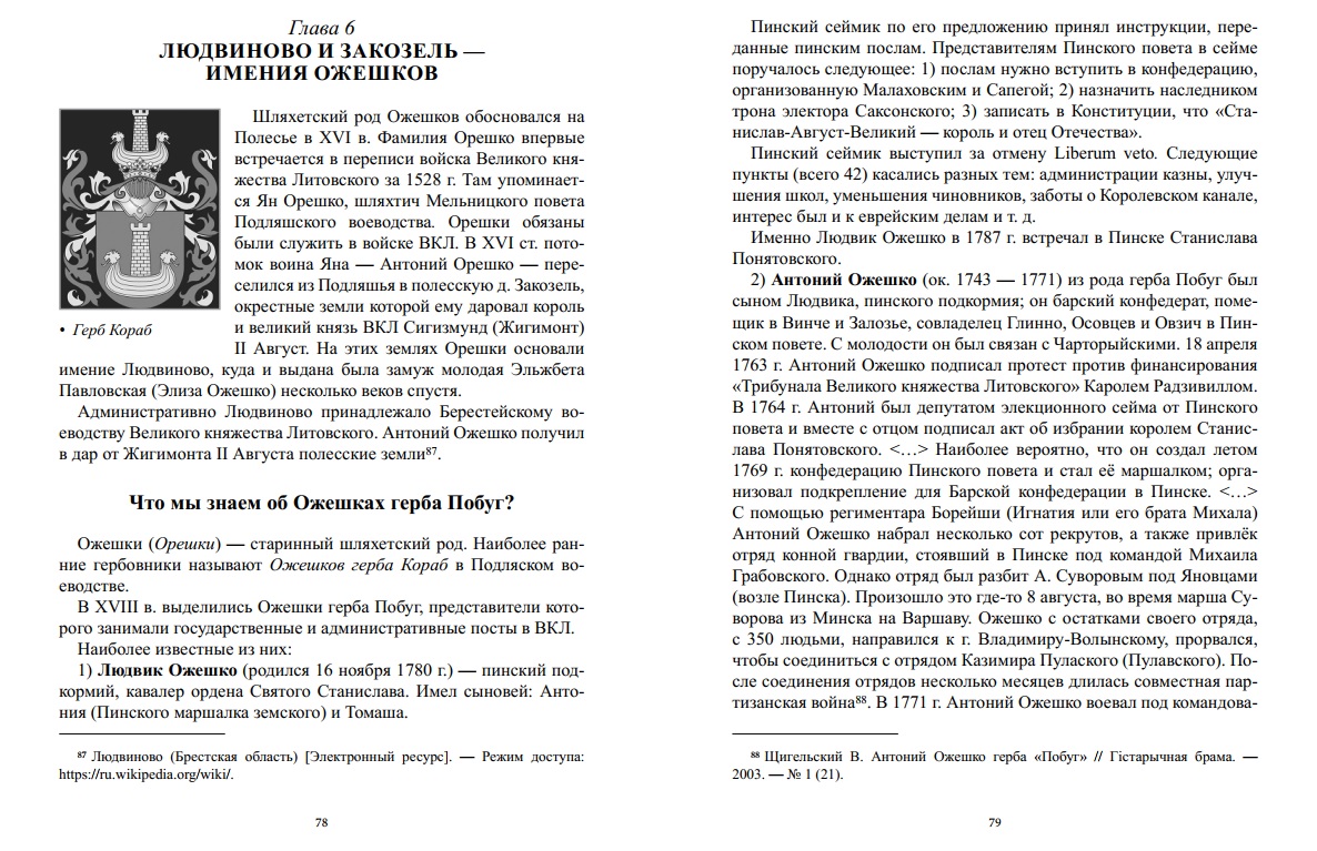 В этой книге по крупицам восстановлены биографии владельцев родовых имений (Овзичи, Бронно, Людвиново, Винче и др.) в Кобринском уезде: Павла Ивановича Канторова, Марии Павловны Розвадовской, Михалины-Фелиции Босяцкой, Евгении Максимовны Клер и других; на основании архивных документов расширены биографии многих дворян.