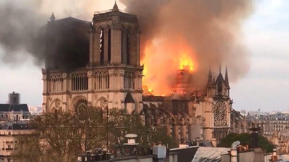 19 апреля 2019 года мир с ужасом наблюдал, как пожар охватил памятник мирового наследия, в результате чего был разрушен знаменитый шпиль собора. Президент Франции Эммануэль Макрон заявил о намерении восстановить Нотр-Дам в течение пяти лет и сделать его «ещё более прекрасным».