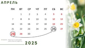 28 апреля (понедельник) – рабочий день переносится на субботу 26 апреля;