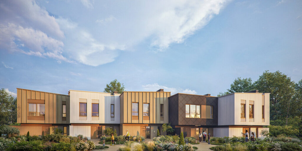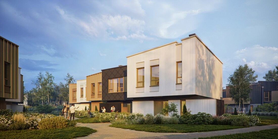 Таунхаусы появятся рядом с гольф-полями и лесным заказником. Архитектура – простая, в скандинавском стиле. В каждом доме будет по пять двухэтажных квартир. Их разместят под углом, чтобы окна не выходили прямо на соседей.