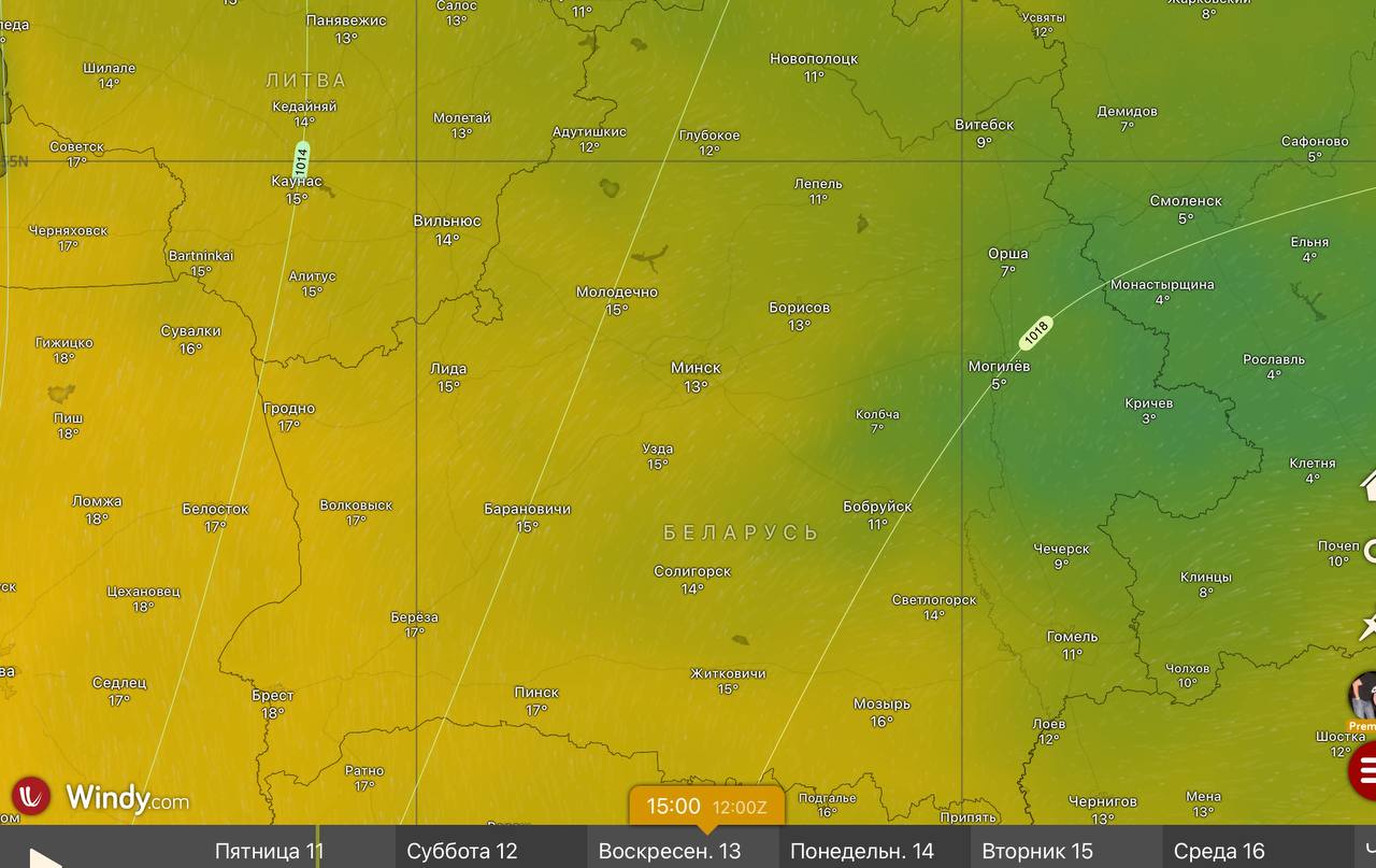 Заглавное фото: прогноз на воскресенье от windy.com.