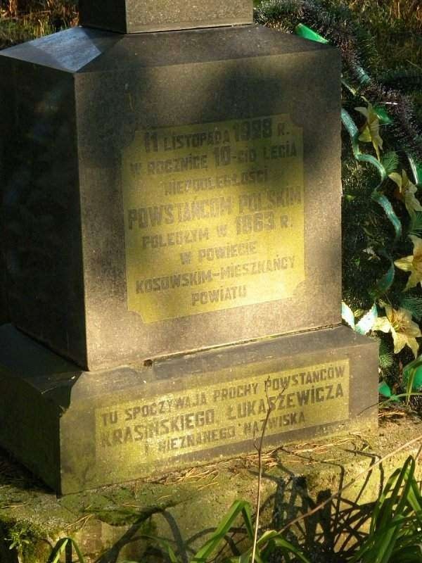 Помнік знаходзіцца ў канцы могілак пры пад’ездзе да Косава з боку Івацэвіч. Там пахаваныя тры паўстанцы. Прозвішча аднаго з іх невядомае, а двое падпісаныя – Красінскі і Лукашэвіч. Цікава, што апошняе прозвішча было ў аднаго з мясцовых кіраўнікоў паўстання. Атрад Ісідора Лукашэвіча быў сфарміраваны ў Мілавідах, ён далучыўся да атрада Францішка Юндзіла і прымаў удзел у Мілавідскай бітве.