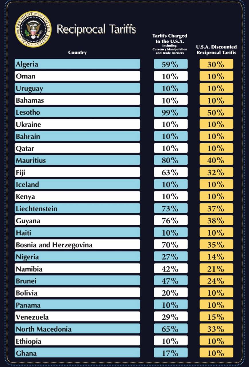 10% тариф на весь импорт в США начнёт действовать с 5 апреля, а дополнительные в отношении примерно 60 стран – с 9 апреля. Для того, чтобы ввести такие высокие тарифы на импорт, Трамп даже объявил чрезвычайное положение в США. Чтобы иметь большие полномочия.