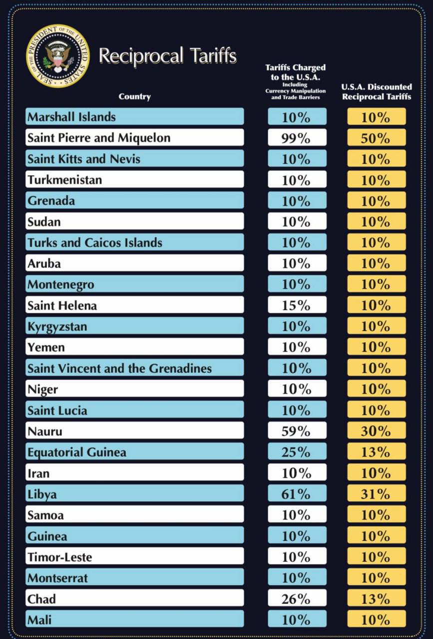 Есть и другие странные случаи. Например, военный британско-американский объект Диего-Гарсия тоже получил 10-процентные пошлины — несмотря на то, что это база, где живут 4000 человек, из которых 3960 — граждане США.