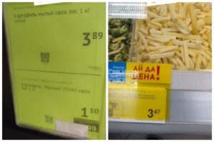 Также, тиктокер под песню «я выгляжу дорого» показал, как идёт с сеткой картофеля «Бабіна лета». В комментариях рассказал, что купил её за 6,8 рубля. Стоит отметить, что такие сетки фасуют по 2,5 килограмма. А бренд принадлежит компании «Агроцентр Сула». Они позиционируют свой продукт как «бульба прэміум-класа». Даже упаковку разрабатывала солидная дизайнерская фирма, чтобы передать белорусские традиции.