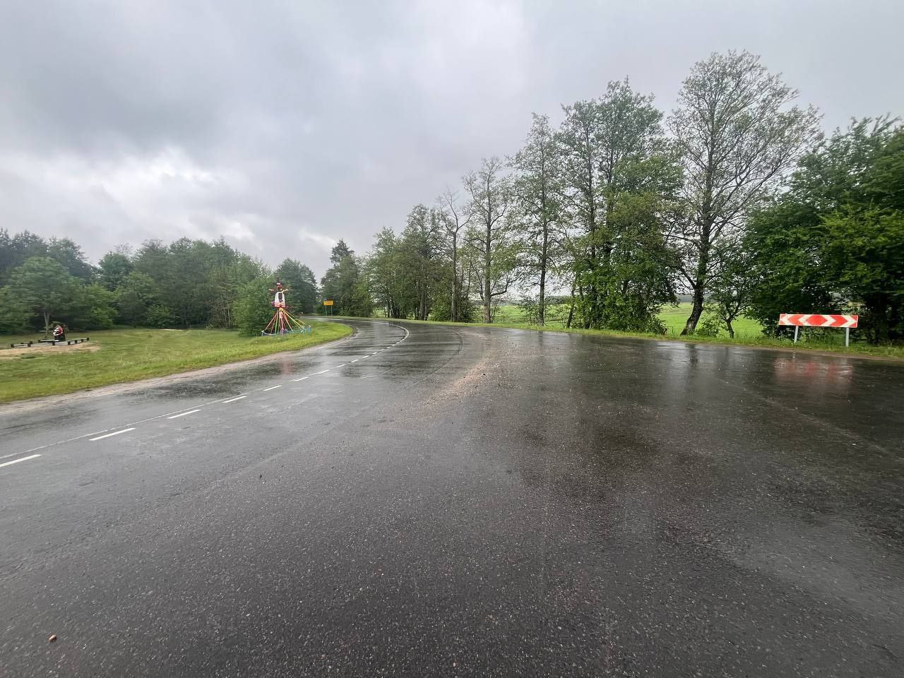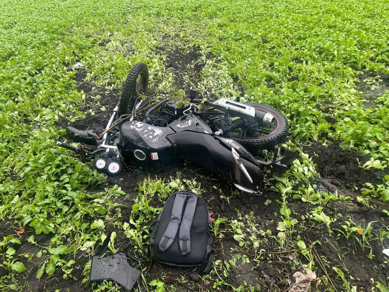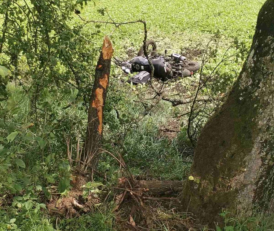 На 1 километре этой дороги мотоциклист не справился с управлением, съехал в прямом направлении в кювет, где врезался дерево и опрокинулся. У водителя не было права управления транспортными средствами. На момент ДТП водитель и пассажир были без мотошлемов. После ДТП водитель и пассажир доставлены в больницу.