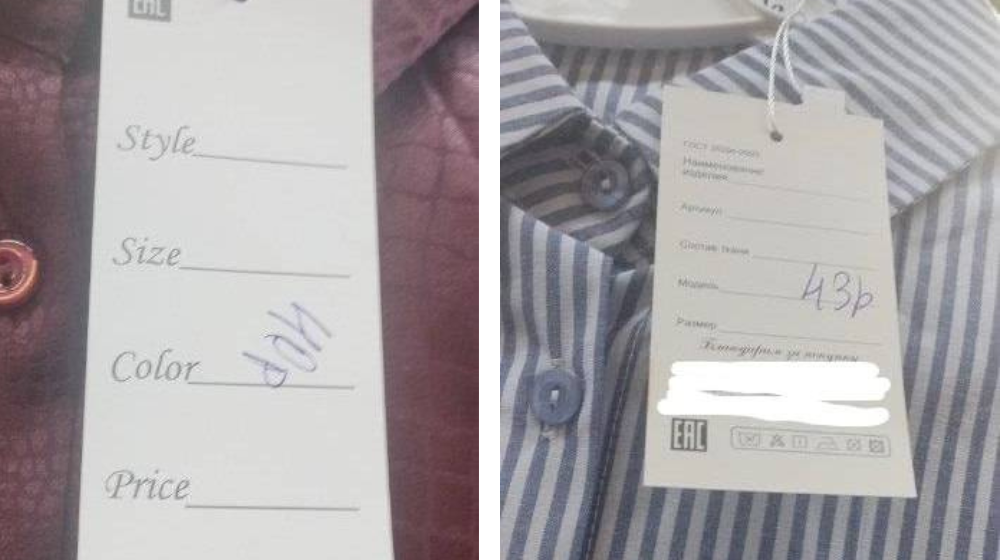 На полках – кроссовки, куртки, костюмы и рубашки. Одни вещи были вовсе без каких-либо опознавательных знаков, другие – с ярлыками, в которых сложно было поверить. К тому же, магазин даже не значился в Торговом реестре Беларуси, что по закону обязательно.