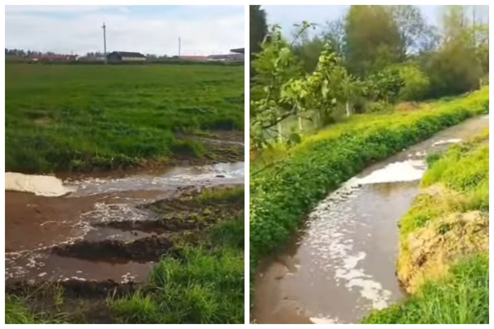 «Прошёл дождь и смотрите, что творится – с поля течёт… Вот оно, всё бежит сюда, здесь труба проходит под дорогой и пошло на поле. Буквально метров 200 находится канава, которая впадает в реку Свислочь. Со Свислочи до Березины – 2-3 километра. И оно всё течёт туда. Может хоть кто-то откликнется, поможет, приедет. Потому что нету больше сил. Здесь стоки, а вот через дорогу дом. Как здесь можно жить в этой вони?» — возмущается Сергей.