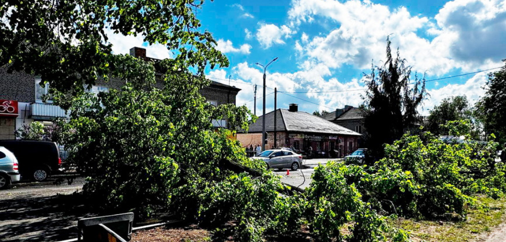 Очевидцы сообщают: грохот был такой силы, что дрогнули оконные стёкла. Крона дерева полностью перегородила движение, машину задело ветками – авто получило повреждения, но водитель, к счастью, не пострадал.