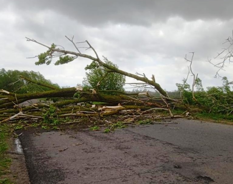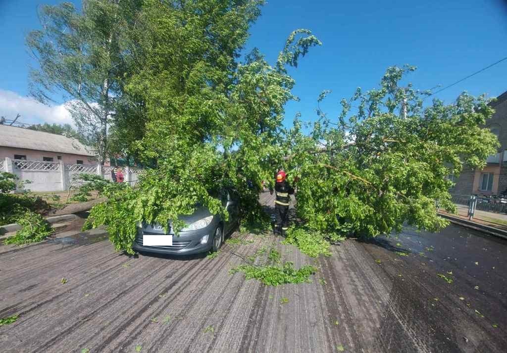 В Столинском, Ляховичском районах спасателям пришлось пилить упавшие на дорогу деревья. А в Барановичах дерево упало на машину.