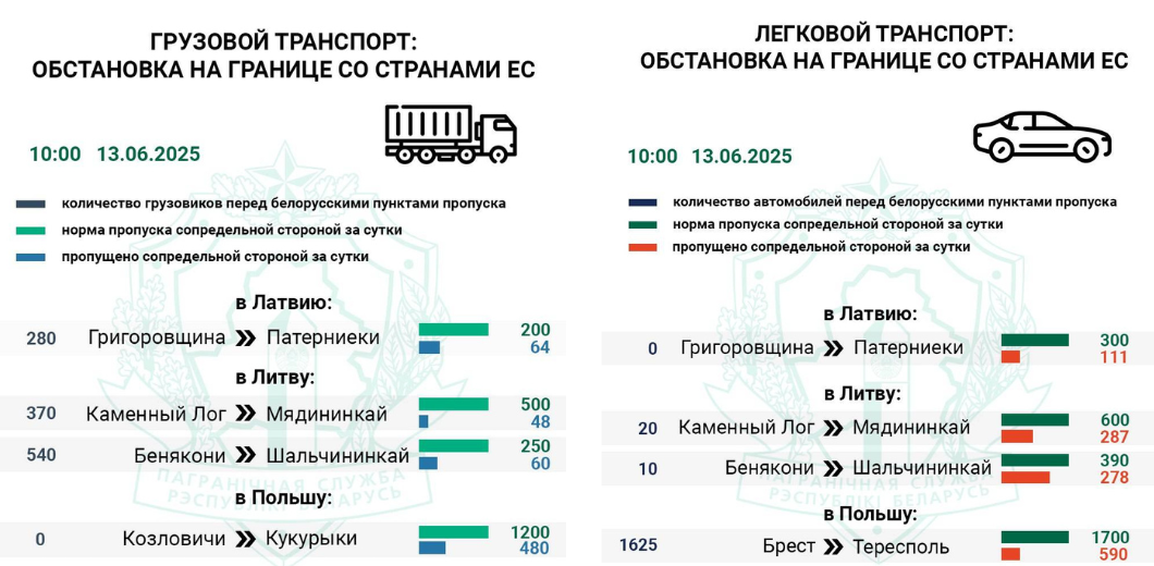 Польское направление – Тересполь (Брест): здесь – самая напряжённая обстановка. Въезда в Польшу ждут 1625 легковых автомобилей и 19 автобусов. За всю неделю польские службы пропустили только 34% от нормы. Учитывая выходные, пробка может стать ещё длиннее.