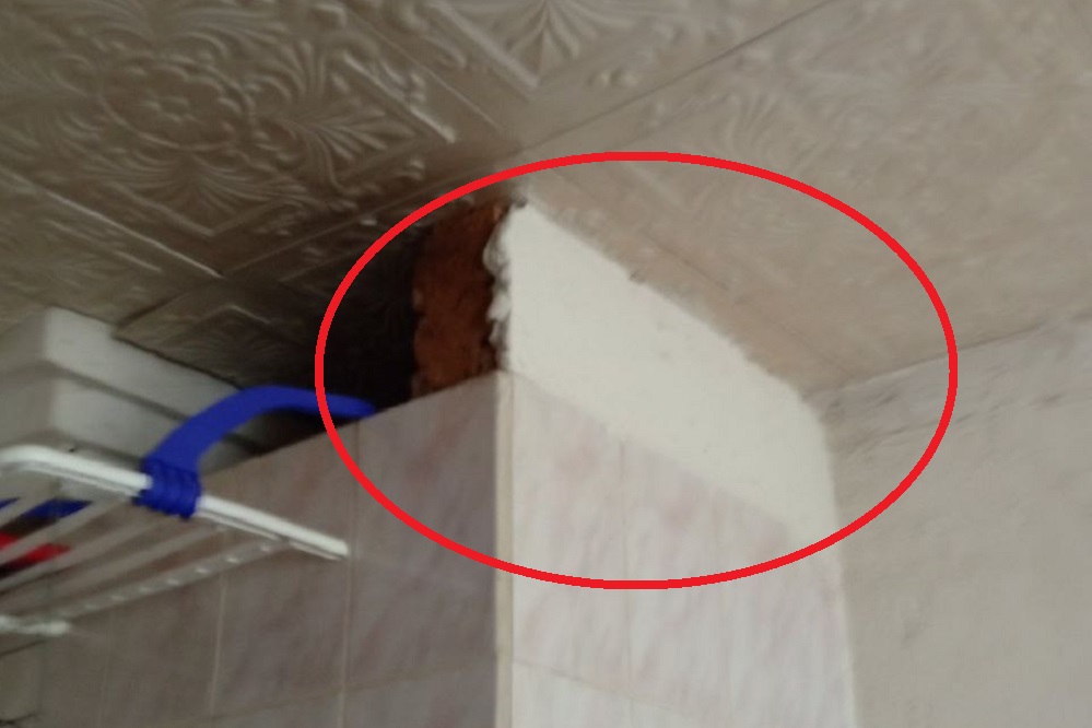 Но жительница дома поделилась ещё одной проблемой. Оказывается, в этом доме печки стоят не сплошняком с первого на второй этаж. На втором этаже отдельная печка, которая закреплена на лагах. Из-за этого в одной из квартир провис потолок, и люди опасаются, что печь со второго этажа может рухнуть на них. Но коммунальники придумали оригинальный способ решить проблему. Вот, что рассказала жительница дома: