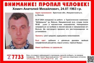 Дрогичинским РОВД разыскивается без вести пропавший Курович Николай Иванович, житель деревни Заставье. Мужчине 46 лет. С 12 апреля его никто не видел – в этот день он вышел из учреждения «Лечебно-трудовой профилакторий №8» УДИН МВД по Брестской области, но домой так и не вернулся. С тех пор его местонахождение остаётся неизвестным.