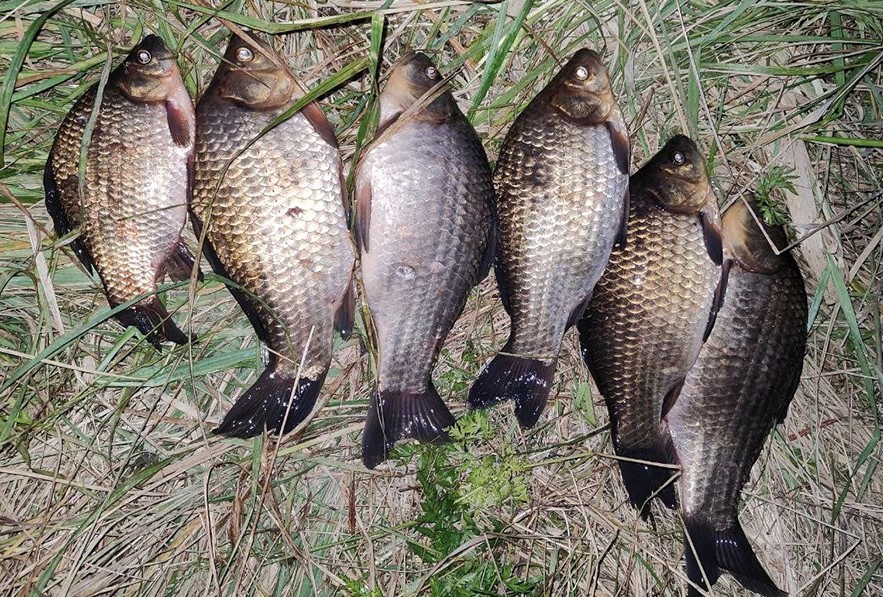 Вечерний карась с канала в Городнянском Мху. Рыба вся икряная, клёв капризный.