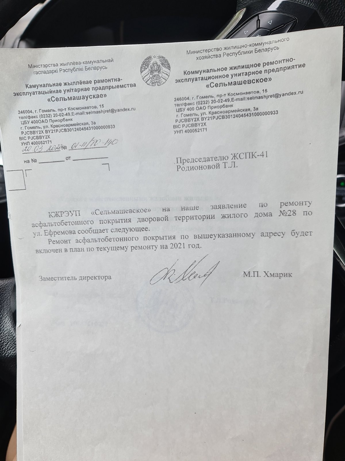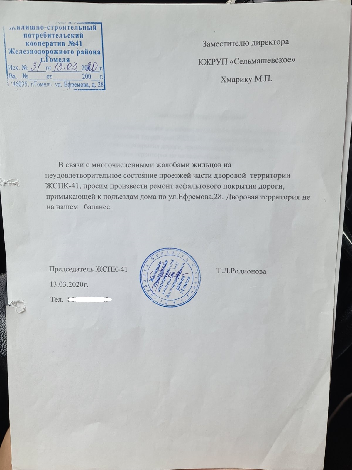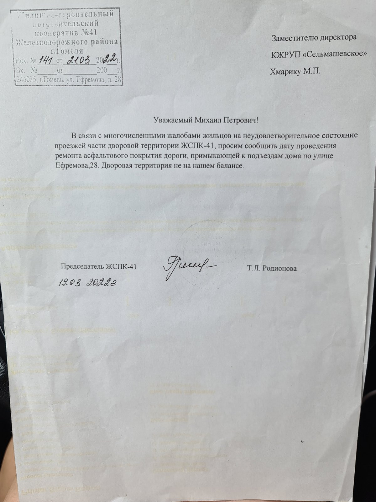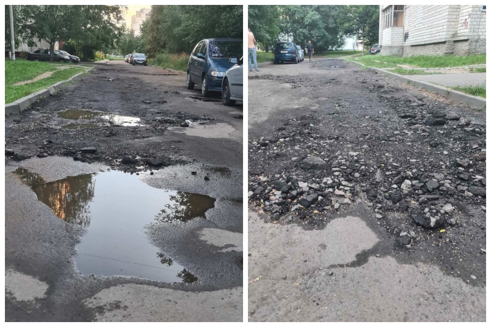 Жительница микрорайона Сельмаш в Гомеле рассказала, что несколько лет местные жители требуют ремонта дороги во дворах, а в ответ получают максимум засыпку ям отходами.