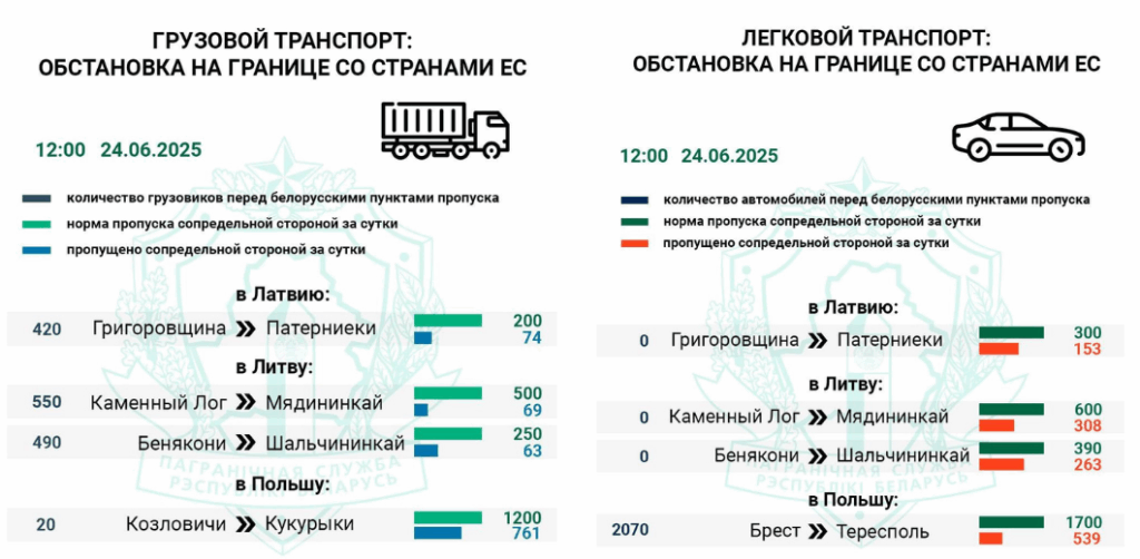 Латвия (Григоровщина / Патерниеки): Авто – 0, за сутки пересекли 153, норма – 300.