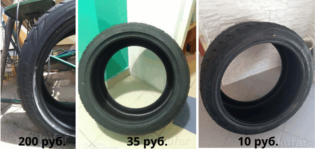Продавцы не стесняются формулировок – мол, шины с Гран-при дрифта. Да, бывшие в употреблении, но с историей! Была, например, на «Куфаре» шина от Nissan Silvia S15. Летняя, ширина – 265, высота – 60, диаметр R18. Производитель – Westlake. Правда, объявление исчезло, как дым на старте. Остались другие – но не менее колоритные.